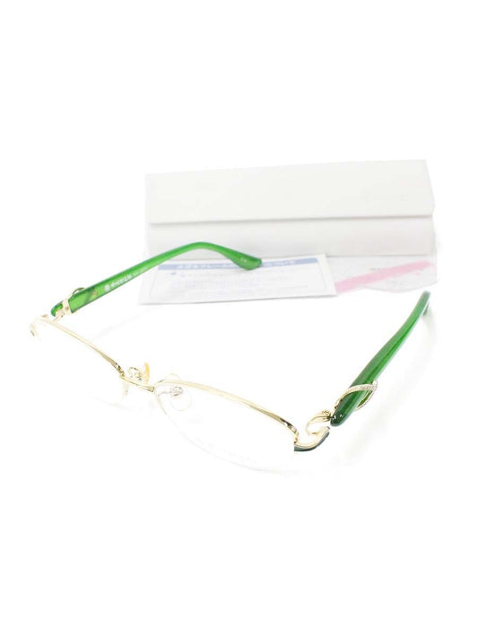 中村勘三郎 KN-2675 メガネ ゴールド/グリーン シープホーン スワロフスキーリング ハーフリム ITPL2O7WMX7O
