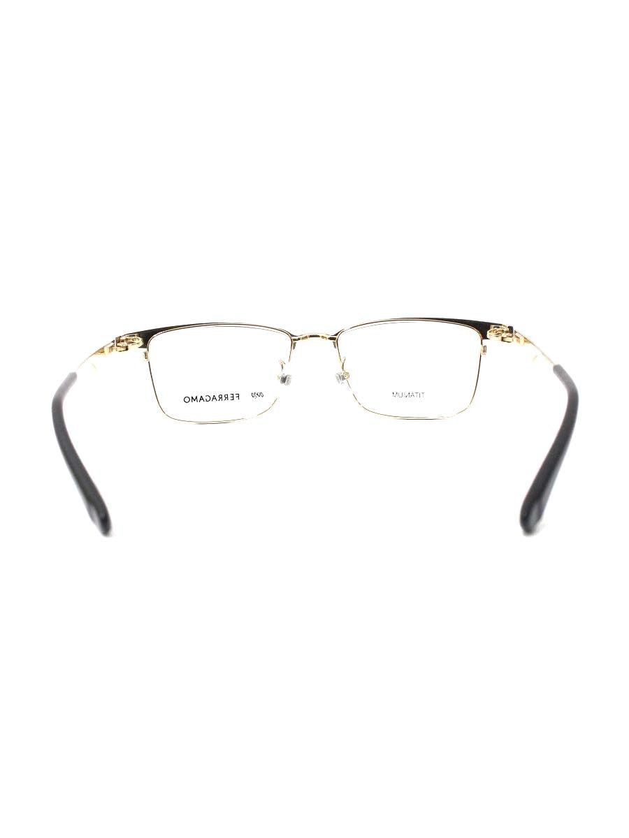 フォーナインズ 999.9 Salvatore Ferragamo コラボ SF9010 メガネ ゴールド/ブラック スクエア ITIPD6SSGPRH