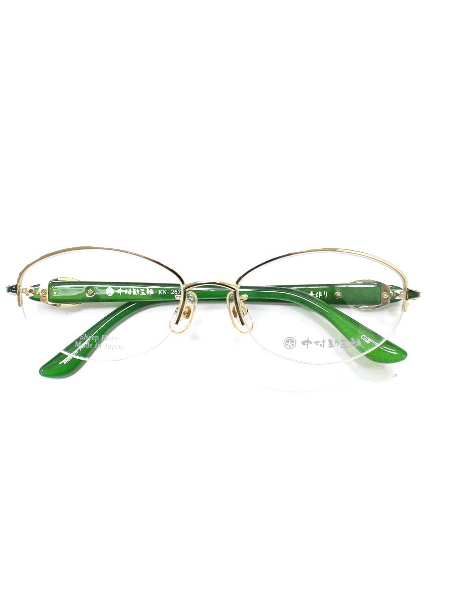 中村勘三郎 KN-2675 メガネ ゴールド/グリーン シープホーン スワロフスキーリング ハーフリム ITPL2O7WMX7O